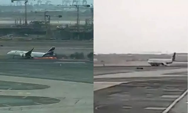 இதனால் விமானத்தை விமானிகள் நிறுத்த முயற்சித்தனர். ஓடு பாதையில் விமானம் தீப்பொறிகள் பறந்தபடியும், கரும்புகை வெளியேறியவாறும் பல அடி தூரம் சென்று நின்றது. விமானத்தில் இருந்து பயணிகள் பீதியில் அலறினார்கள்.