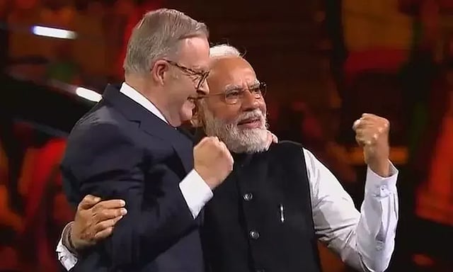 இன்று இந்திய வம்சாவழியினர் இடையே மோடி மற்றும் ஆஸ்திரேலியா பிரதமர் அந்தோணி அல்பானிஸ் இருவரும் சிட்னியில் பேசினர். சிட்னியில் குடோஸ் பாங்க் பகுதியில் நடந்த கூட்டத்தில் சுமார் 20,000 பேர் கூடி இருந்தனர். பிரதமர் மோடியை பார்த்ததும் அங்கிருந்தவர்கள் மோடி...மோடி... என அழைத்தனர். கரகோஷத்தால் அந்த அரங்கமே அதிர்ந்தது. பிரதமர் மோடியின் பெயரை கேட்டதுமே ஆஸ்திரேலிய பிரதமர் வியந்து போனார். அப்போது அந்தோணி அல்பானிஸ் பேசுகையில்,