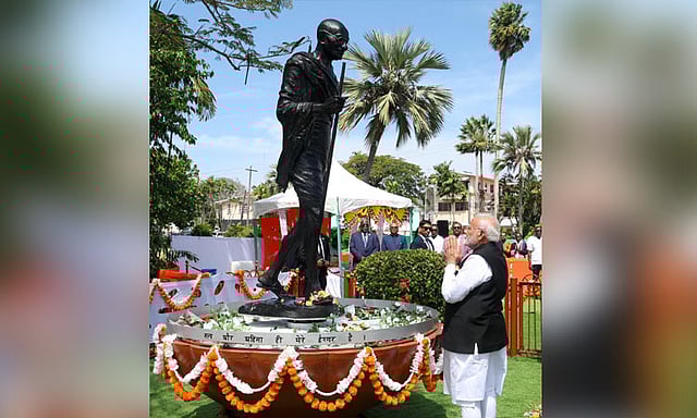 இந்நிலையில், கயானா தலைநகர் ஜார்ஜ் டவுனில் உள்ள புரோமெனிடா பூங்காவில் உள்ள மகாத்மா காந்தி சிலைக்கு பிரதமர் மோடி நேற்று மலர்தூவி மரியாதை செலுத்தினார்.