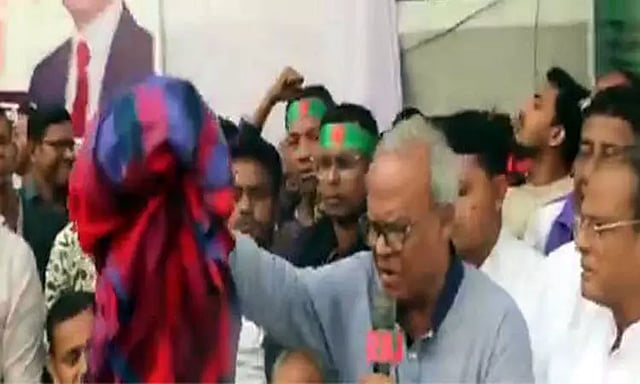உள்ளூர் தயாரிப்புகளை வாங்குங்கள் என்ற பேனர்களுடன் அவர்கள் ஆர்ப்பாட்டத்தில் ஈடுபட்டனர். இந்நிலையில், அக்கட்சியின் மூத்த இணை பொது செயலாளரான ருஹுல் கபீர் ரிஸ்வி, கட்சி ஆதரவாளர்களின் இந்திய எதிர்ப்பு கோஷங்களுக்கு மத்தியில், அவருடைய மனைவியின் இந்திய சேலையை எரித்துள்ளார்.