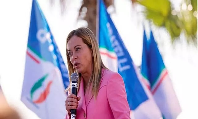 45 வயதான ஜார்ஜியா மெலோனி 'கடவுள், தேசபக்திமிக்க நாடு மற்றும் குடும்பம்' என்ற பழமையான பாசிச முழக்கத்தை தேர்தல் பிரச்சாரத்தில் பயன்படுத்தினார்.