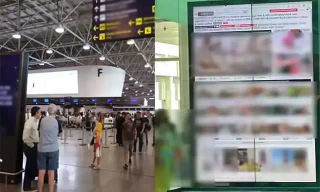 அப்போது விமான நிலையத்தில் விமானங்கள் வருகை குறித்த தகவல்களை அறிவிக்கும் திரையில் திடீரென ஆபாச படங்கள் ஓட தொடங்கின. இதனால் பயணிகள் மற்றும் விமான நிலைய ஊழியர்கள் கடும் அதிர்ச்சியடைந்தனர்.