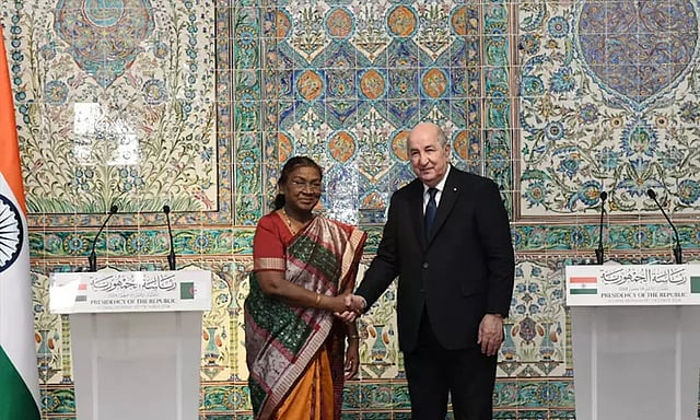 அந்நாட்டு ஜனாதிபதி அப்தில் மஜித் திபவுன் மற்றும் அவருடைய மந்திரி சபை உறுப்பினர்கள் ஜனாதிபதி முர்முவை வரவேற்றனர். இந்நிலையில், அல்ஜீரியாவில் உள்ள எல் மவுராடியா அரண்மனையில் அந்நாட்டு ஜனாதிபதி அப்தில் மஜித் திபவுனை, ஜனாதிபதி முர்மு நேரில் சந்தித்து பேச்சுவார்த்தை நடத்தினார். இந்த சந்திப்பில் பல்வேறு விவகாரங்கள் பற்றி இருவரும் விவாதித்ததுடன், இரு நாடுகளின் உறவுகளை மேலும் வலுப்படுத்துவதற்கான உறுதியான முடிவெடுக்கப்பட்டது என முர்மு கூறியுள்ளார்.