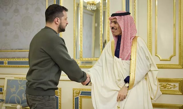 இதற்காக தற்போது சவுதி அரேபிய வெளியுறவு மந்திரி பைசல் பின் பர்கான் அல் சவுத் உக்ரைன் சென்றுள்ளார். அங்கு கீவ் நகரில் அதிபர் விளாடிமிர் ஜெலன்ஸ்கியை சந்தித்து பேச்சுவார்த்தை நடத்தினார். பிறகு அதிபர் முன்னிலையில் உக்ரைன் நாட்டுக்கு மனிதாபிமான மற்றும் பெட்ரோலிய எண்ணெய் வாங்குவதற்கு நிதி உதவி செய்யும் ஒப்பந்தம் செய்துகொள்ளப்பட்டது.