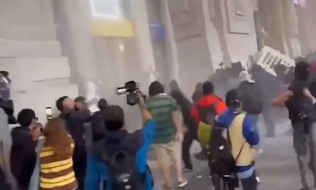 பல்வேறு பாலஸ்தீன ஆதரவாளர்கள் ஆயிரக்கணக்கானோர் போராட்டங்களில் ஈடுபட்டனர். மிலன் நகரில் நடந்த போராட்டத்தின்போது போலீசாருடன் மோதல் ஏற்பட்டது. போலீசார் மீது கற்கள், பாட்டில்களை வீசினர். மேலும் அங்குள்ள ரெயில் நிலையத்தை சூறையாடினர். ஜன்னல் கண்ணாடிகளை உடைத்தனர். இதையடுத்து போராட்டக்காரர்களை கலைக்க போலீசார் கண்ணீர் புகை குண்டுகளை வீசினர்.