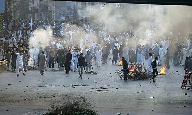 அப்போது அரசுக்கு எதிராக கோஷமிட்டனர். மேலும் இஸ்லாமாபாத் விரைவு சாலையில் இம்ரான்கான் கட்சியினர் மறியலில் ஈடுபட்டனர். போராட்டக்காரர்களை கலைக்க போலீசார் கண்ணீர் புகை குண்டுகளை வீசினர். இதனால் அங்கு பெரும் பரபரப்பு நிலவியது.