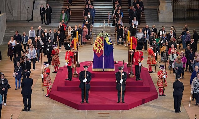 2-ம் எலிசபெத்தின் உடல் லண்டனில் உள்ள வெஸ்ட் மின்ஸ்டர் மண்டபத்தில் மேடையில் அஞ்சலிக்காக வைக்கப்பட்டுள்ளது. அவரது உடலுக்கு தொடர்ந்து 24 மணி நேரமும் மக்கள் நீண்ட வரிசையில் நின்று அஞ்சலி செலுத்தி வருகின்றனர்.