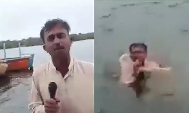 இதனிடையே பாகிஸ்தானை சேர்ந்த செய்தியாளரின் வீடியோ ஒன்று சமூக வலைத்தளங்களில் வைரலாக பரவி வருகிறது. அந்த வீடியோவில் 'பிபர்ஜாய்' புயல் குறித்து பேசும் அந்த நபர் கடலின் ஆழம் குறித்தும் பேசுகிறார். அப்போது சற்றும் எதிர்பாரா விதமாக அவர் கடலில் குதித்துள்ளார். கடலில் விழுந்தும் அவர் தனது மைக்கை விடாமல் கடலின் ஆழம் குறித்து பேசிக்கொண்டு இருக்கிறார்.