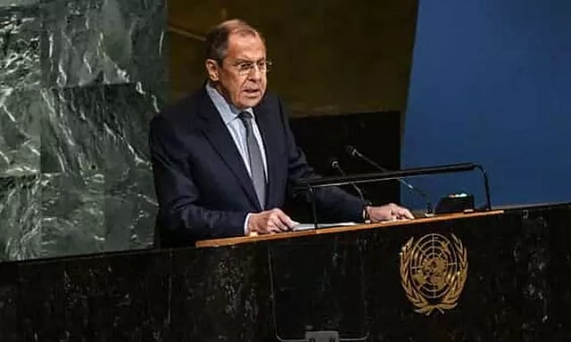 ஐக்கிய நாடுகள் சபையின் 77வது ஆண்டு கூட்டத்தில் உரையாற்றிய ரஷிய வெளியுறவு மந்திரி செர்ஜி லாவ்ரோவ் இதனை கூறினார்.