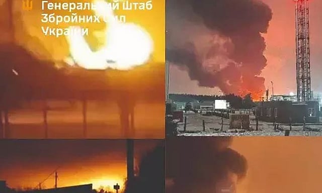 ரஷியாவின் ராணுவ தளங்கள் (ராணுவத்திற்கு பயன்படுத்தப்படும் பொருட்கள் மற்றும் இடங்கள்) மீது மிகப்பெரிய அளவில் தாக்குதல் நடத்தியதாக உக்ரைன் தெரிவித்துள்ளது