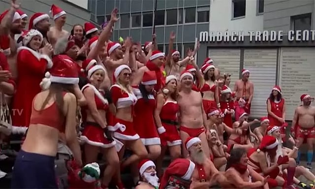 அந்த வகையில் ஐரோப்பிய நாடுகளில் ஒன்றான ஹங்கேரியில் கிறிஸ்துமஸ் கொண்டாட்டங்கள் களைகட்டி வருகின்றன. இந்த கொண்டாட்டத்தின் ஒரு பகுதியாக தலைநகர் புடாபெஸ்ட்டில் நூதன முறையில் மாரத்தான் ஓட்டம் நடைபெற்றது. அந்த மாரத்தான் ஓட்டத்தில் பங்கேற்றவர்கள் அனைவரும் நீச்சல் உடைகளில் கிறிஸ்துமஸ் தாத்தா போல் வித்தியாசமாக வேடமணிந்திருந்தனர்.