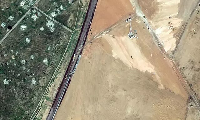 காசாவின் மேற்கு எல்லையில் ஷேக் ஜுவைத்- ராபா நகரங்களை இணைக்கும் சாலையையொட்டி 3.5 கிமீ தொலைவுக்குச் சுவர் கட்டுமானம் நடைபெற்று வருகிற செயற்கை கோள் படங்களை மேக்ஸர் டெக்னாலஜீஸ் வெளியிட்டுள்ளது.