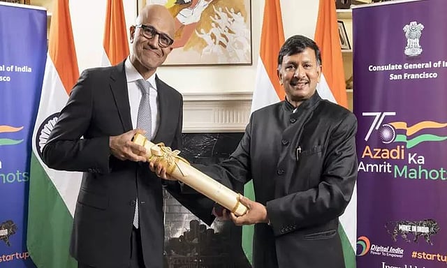 இந்த நிலையில் சத்ய நாதெல்லா இந்தியாவின் 3வது உயரிய விருதான பத்ம பூஷன் விருதை தற்போது பெற்றுள்ளார். சான் பிரான்சிஸ்கோ-வின் இந்திய கவுன்சில் ஜெனரல் டாக்டர் டி.வி.நாகேந்திர பிரசாத்திடம் இருந்து சத்ய நாதெல்லா விருதை பெற்று கொண்டார்.