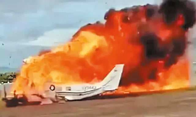 வெனிசுலாவின் டாச்சிரா மாகாணம் பாராமில்லோ விமான நிலையத்தில் இருந்து சிறிய ரக விமானம் ஒன்று புறப்பட்டது. ஓடுதளத்தை விட்டு மேலே பறந்த சில நிமிடங்களிலேயே அந்த விமானம் விமானியின் கட்டுப்பாட்டை இழந்தது. இதனால் ஓடுபாதையில் விழுந்த விமானம் தீப்பிடித்து எரிந்தது.