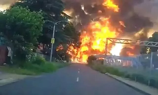 தென் ஆப்பிரிக்க தலைநகர் ஜோகன்னஸ்பர்க்கில் சென்று கொண்டிருந்த எரிவாயு டேங்கர் லாரி ஒன்று, பாலம் ஒன்றின் அடியில் சிக்கிக் கொண்டது. அந்த லாரியை நகர்த்த முயன்றபோது அது பயங்கர சத்தத்துடன் வெடித்து சிதறியது.
