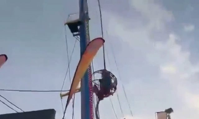 மேலே சென்று சுழன்றுகொண்டிருந்தபோது இடதுபுறம் இருந்த ரோப் திடீரென அறுந்ததால், சிறுவர்கள் அமர்ந்து சவாரி செய்த பெட்டி, சுமார் தொண்ணூறு மீட்டர் உயரத்திலிருந்து, வேகமாக வந்து தரையை நோக்கி பாய்ந்தது.