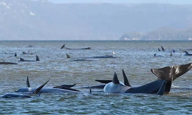 ஆஸ்திரேலியா நாட்டின் டாஸ்மேனியா தீவில் உள்ள மேக்வாரி துறைமுகத்துக்கு அருகே உள்ள கடற்கரையில் நேற்று 200-க்கும் அதிகமான திமிங்கலங்கள் கரை ஒதுங்கின.