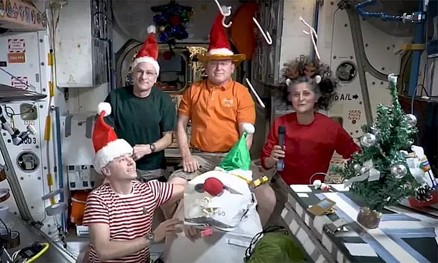 சர்வதேச விண்வெளி நிலையத்தில் 6 மாதங்களுக்கு மேல் தங்கி உள்ள இந்திய வம்சாவளியை சேர்ந்த சுனிதா வில்லியம்ஸ் மற்றும் அவரது குழுவினர் பூமியில் இருக்கும் மக்களுக்கு கிறிஸ்துமஸ் வாழ்த்து செய்தியை தெரிவித்துள்ளனர். விண்வெளியில் கிறிஸ்துமஸ் கொண்டாடும் வீடியோ பதிவு ஒன்றை நாசாவெளியிட்டுள்ளது.
