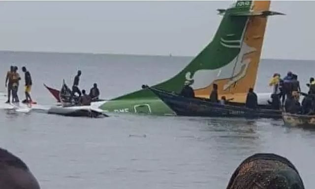 தான்சானியாவில் உள்ள டார் எஸ் சலாம் நகரில் இருந்து புகோபா நகரை நோக்கி பயணிகள் விமானம் ஒன்று சென்று கொண்டிருந்தது. இதில் 40-க்கும் மேற்பட்டவர்கள் பயணித்து கொண்டிருந்தனர்.