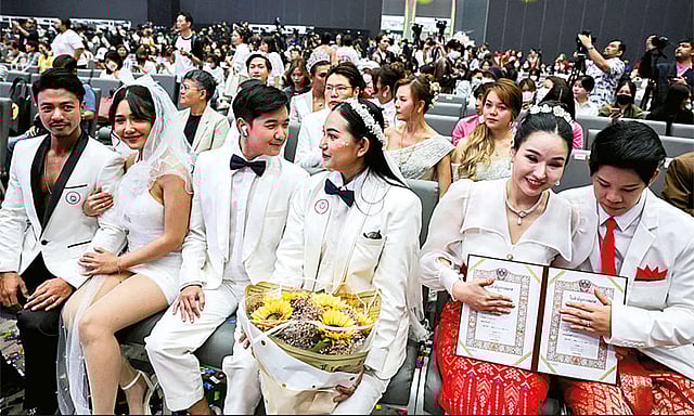 இந்தநிலையில் தாய்லாந்தில் ஓரினச்சேர்க்கையாளர்கள் திருமண சட்டம் நேற்று அமலுக்கு வந்ததையடுத்து தலைநகர் பாங்காக்கில் ஒரேநாளில் 300க்கும் மேற்பட்ட ஜோடிகள் திருமணம் செய்து கொண்டு புகைப்படத்துக்கு உற்சாகமாக போஸ் கொடுத்தனர்.