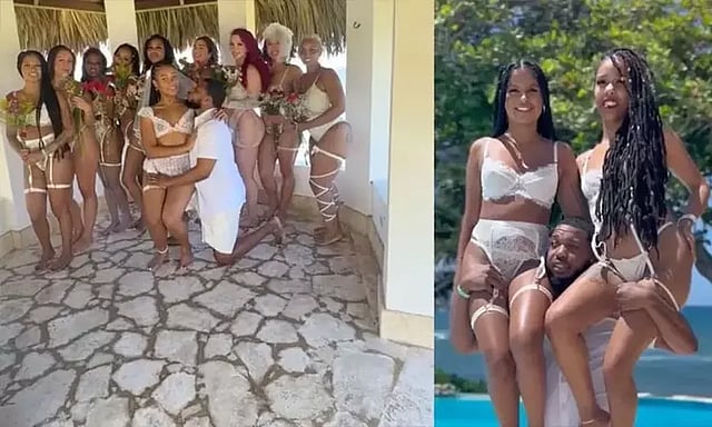 அமெரிக்காவின் நியூயார்க் நகரைச் சேர்ந்தவர் லஸ்டின் இமானுவேல் (28). 10 இளம் பெண்களை ஜூலை 31ம் தேதி ஒரே நேரத்தில் திருமணம் செய்து கொண்டார். இந்த திருமண விழாவை லஸ்டின் கடற்கரையில் கொண்டாடினார்.