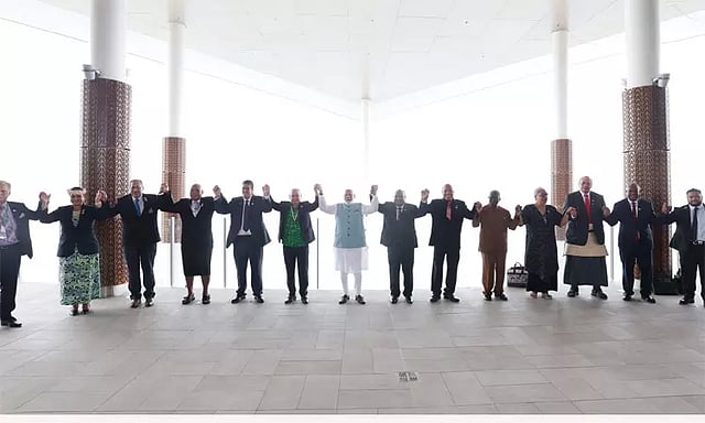 இந்நிலையில், 14 பசுபிக் தீவுகளின் நாடுகள் மற்றும் இந்தியா பங்கேற்ற மாநாடு பங்கேற்றது. இந்த மாநாட்டில் பேசிய பிரதமர் மோடி, உலகில் தற்போது எரிபொருள், உணவு, உரம், மருந்து பொருட்களின் விநியோகம் பாதிக்கப்பட்டுள்ளது. நாம் நம்பியவர்கள் தேவை ஏற்படும்போது நமக்கு ஆதரவு அளிக்கவில்லை' பருவநிலை மாற்றம், இயற்கை பேரிடர்கள், ஏழ்மை, வருமை, சுகாதாரம் தொடர்பான பிரச்சினைகள் ஏற்கன்வே உள்ளன. தற்போது புதிய பிரச்சினைகளும் உருவெடுத்து வருகிறது. இந்த சவாலான சூழ்நிலையில் இந்தியா அதன் நட்பு நாடுகளான பசுபிக் தீவு நாடுகளுடன் உறுதுணையாக நிற்பது எனக்கு மகிழ்ச்சியளிக்கிறது' என்றார்.