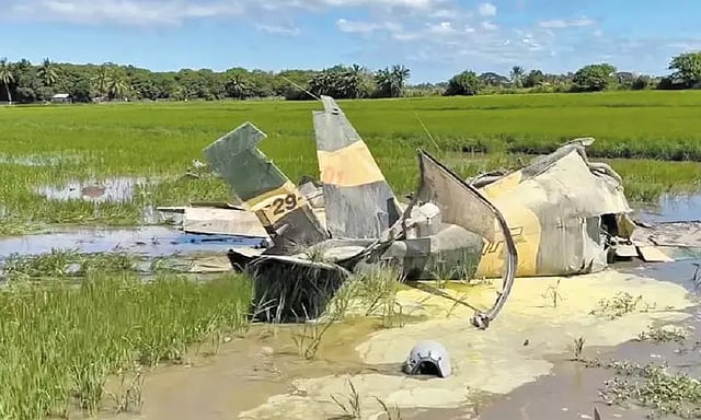 இந்த விமானம் பிலார் நகருக்கு மேலே பறந்துகொண்டிருந்தபோது திடீரென விமானிகளின் கட்டுப்பாட்டை இழந்தது. அதை தொடர்ந்து அங்குள்ள வயல்வெளியில் விமானம் விழுந்து நொறுங்கியது.