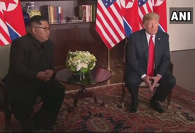 இதையடுத்து, திட்டமிட்ட படி இன்று (ஜூன் 12) சிங்கப்பூர் சென்டோசா தீவில் உள்ள நட்சத்திர ஓட்டலில், வடகொரியா அதிபர் கிம் ஜாங் அன் - அமெரிக்க அதிபர் டொனால்டு டிரம்ப் இடையேயான சந்திப்பு நடைபெற்றது. உலக நாடுகள் உற்று நோக்கிய இந்த சந்திப்பு சுமார் 45 நிமிடங்கள் நீடித்தது. இரு நாட்டு தலைவர்களும் நேரடியாக சந்தித்துக்கொள்வது வரலாற்றில் இதுதான் முதல் தடவையாகும்.