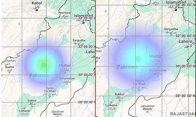 10 கி.மீ. ஆழத்தில் ஏற்பட்ட இந்த நிலநடுக்கம், 30.72 டிகிரி வடக்கு அட்சரேகையிலும்,69.80 டிகிரி கிழக்கு தீர்க்கரேகையிலும் இருக்கும் என முதலில் தீர்மானிக்கப்பட்டது. நிலநடுக்கத்தால் ஏற்பட்ட சேதம் மற்றும் பாதிப்பு குறித்து எந்தவித தகவலும் வெளியாகவில்லை.