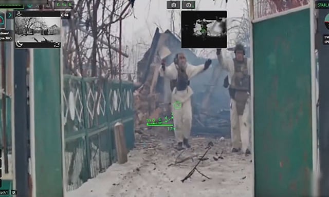 அந்த வீடியோவில் ரஷிய ராணுவ வீரர்கள் கைகளை தூக்கி சரண் அடையும் நோக்கில் வந்தனர். அவர்களில் ஒருவர் ரத்த காயத்துடன் காணப்பட்டார். அந்த ரோபோவிடம் கே.டி.-7.62 என்ற இயந்திர துப்பாக்கி ஒன்று உள்ளது.