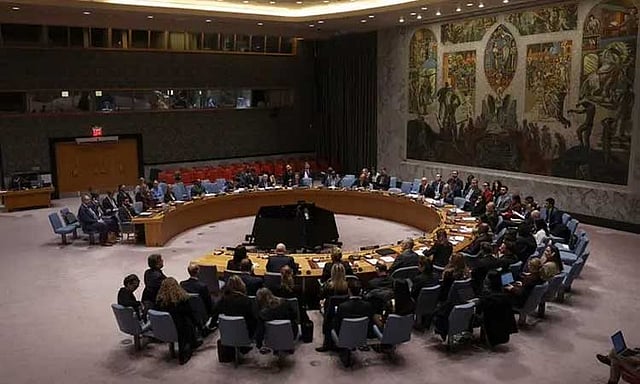 இந்த தீர்மானம் மீது இன்று வாக்கெடுப்பு நடத்த திட்டமிடப்பட்டது. இந்த வரைவு தீர்மானத்தில் ஹார்முஸ் ஜலசந்தி வழியாக செல்லும் கப்பல் போக்குவரத்தை பாதுகாக்க ஒரு படையை அமைப்பதை கட்டாயமாக்க வேண்டும் என்று கோரப்பட்டு உள்ளது.