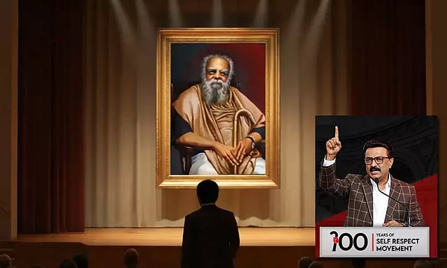 ஏனென்றால் அவர் தமிழர் தலைவர் மட்டுமல்ல, தமிழ்நாட்டு தலைவர் மட்டுமல்ல, உலகெங்கும் உள்ள தன்மானத்தை காத்த தலைவராக, சுயமரியாதையை காத்த தலைவராக விளங்கி கொண்டு இருக்கக்கூடியவர். அவருடைய உருவப் படத்தை திறந்து வைத்து பேச இருக்கிறேன் என்பதை உங்களுக்கெல்லாம் நான் மகிழ்ச்சியுடன் தெரிவித்துக் கொள்கிறேன்' என பேசி உள்ளார்.