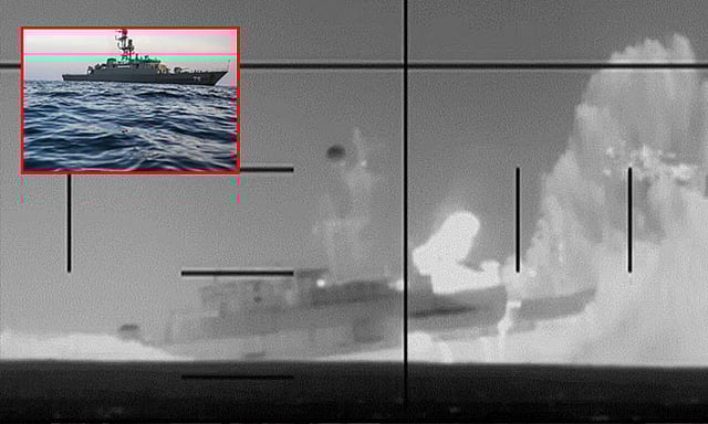 இந்நிலையில், இந்திய பெருங்கடலில் இருந்த ஈரான் போர்க்கப்பலை அமெரிக்காவின் நீர்மூழ்கி கப்பல் ஒன்று கடலுக்கு உள்ளே இருந்து குண்டுவீசி கடுமையாக தாக்கியது. இதில் அந்த கப்பல் பல துண்டுகளாக உடைந்தும், வெடித்து சிதறியும், தீப்பற்றி எரிந்தும் போனது. அந்த கப்பலை, அமெரிக்காவின் நீர்மூழ்கி கப்பல் தாக்கும் காட்சிகள் சமூக ஊடகங்களில் வைரலாகின.