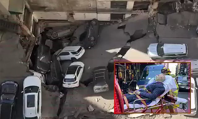 இதன் ஒரு பகுதி திடீரென இடிந்து விழுந்து உள்ளது. அது கீழ் தளத்தின் மீது விழுந்ததில் பெரும் பாதிப்புகளை ஏற்படுத்தி உள்ளது. சிறிய மற்றும் பெரிய ரக கார்கள் என ஒன்றன் மீது ஒன்று விழுந்து உள்ளன.