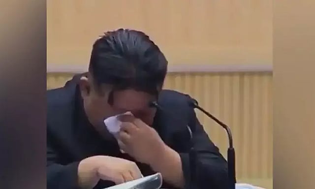 இப்படி பேசும்பேது கிம்ஜாங் உன் கண்கலங்கினார். இதையடுத்து அவர் தனது கையில் இருந்த வெள்ளை நிற கைக்குட்டையை எடுத்து கண்ணீரை துடைத்து கெண்டார். இந்த வீடியே தற்பேது இணையதளத்தில் வெளியாகி வேகமாக பரவி வருகிறது.