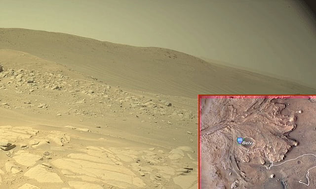 இந்த நிலையில் தற்போது 'பெர்சவரன்ஸ்'ரோவர் மூலம் எடுக்கப்பட்ட செவ்வாய் கிரகத்தின் புகைப்படங்களை நாசா தற்போது வெளியிட்டுள்ளது. அதில் பெல்வா பள்ளத்தின் உட்புற பகுதியை பெர்சவரன்ஸ் ரோவர் படம் எடுத்து அனுப்பியுள்ளது.