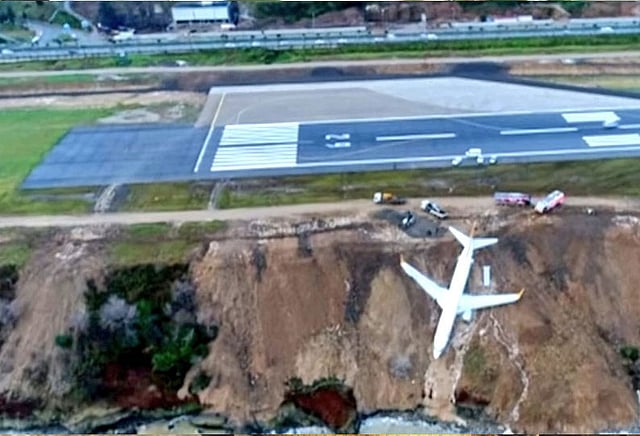 விமானம், பள்ளத்தில் கீழ் நோக்கி கருங்கடலில் பாய்வது போன்ற புகைப்படங்கள் அந்நாட்டு இணைய ஊடகங்களில் வெளியாகியுள்ளது. விமானம் ஓடுபாதையில் இருந்து விலகியதற்கான காரணம் குறித்து இன்னும் கண்டறியப்படவில்லை. இச்சம்பவம் பற்றி விசாரணைக்கு உத்தரவிட்டுள்ளதாக தெரிவித்துள்ள அதிகாரிகள், ஞாயிற்றுக்கிழமை வரை விமானம் நிலையம் மூடப்படுவதாக தெரிவித்துள்ளனர். #Turkey | #plane_crash