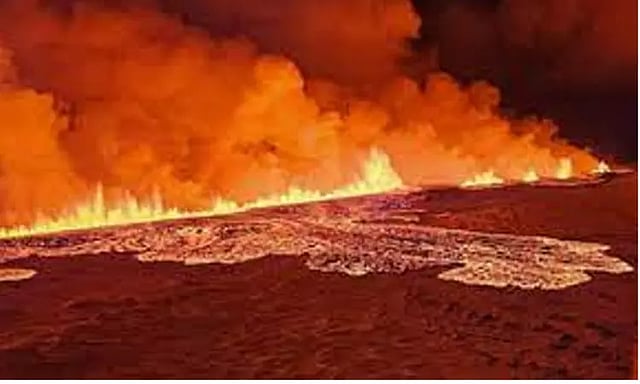 உலகின் 18வது பெரிய தீவாக, வடக்கு அட்லாண்டிக் கடலில் அமைந்திருக்கிறது ஐஸ்லாந்து நாடு. இந்த நாட்டின் ரெய்க்ஜேன்ஸ் தீபகற்பத்தில் உள்ள எரிமலை வெடித்து சிதற தொடங்கியுள்ளது. கிரின்டாவிக் நகரத்தில் இருந்து 4 கிலோ மீட்டர் தொலைவில் உள்ள இந்த எரிமலை நேற்று இரவு ஆக்ரோஷத்துடன் வெடிக்க தொடங்கி தீப்பிழம்பை கக்கி வருகிறது. கடந்த ஒரு வாரமாக குமுறிக் கொண்டிருந்த நிலையில் நேற்று வெடித்து சிதறியுள்ளது.