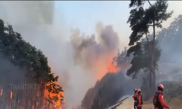 இந்த நிலையில் பலி எண்ணிக்கை தற்போது 28 ஆக உயர்ந்துள்ளது. காட்டுத்தீயை கட்டுப்படுத்த தீயணைப்பு வீரர்கள் போராடி வருகின்றனர். தீயை அணைக்க கிட்டத்தட்ட 9,000 தீயணைப்பு வீரர்கள், 130க்கும் மேற்பட்ட ஹெலிகாப்டர்கள் மற்றும் நூற்றுக்கணக்கான தீயணைப்பு வாகனங்கள் ஈடுபட்டுள்ளன. அன் டோங் நகரம் மற்றும் பிற தென் கிழக்கு நகரங்களில் உள்ள பொதுமக்கள் வெளியேறவும் அதிகாரிகள் உத்தரவிட்டுள்ளனர்.