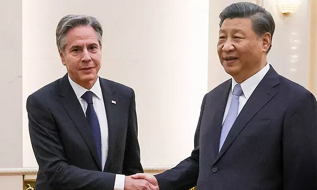 நீண்ட இழுபறிக்கு பின்னர் இறுதியாக இருபெரும் தலைவர்களின் சந்திப்பு பீஜிங்கில் உள்ள அரசு அலுவலகத்தில் நடந்தது. இருநாட்டு பிரநிதிகள் நடுவே நடந்த இந்த நிகழ்வில் அமெரிக்கா-சீனா எதிர்கால ஒற்றுமை குறித்து விவாதிக்கப்பட்டதாக தெரிகிறது. "பிளிங்கனின் சீன வருகை இருநாடுகளின் முன்னேற்றத்திற்கு ஏற்றவகையில் அமைந்துள்ளது" என்று ஜின்பிங் கூறினார். மேலும் "அமெரிக்கா-சீனா இடையேயான உறவு பரஸ்பர மரியாதை, நேர்மையின் அடிப்படையில் வருங்காலத்தில் அமையும்" என அவர் நம்பிக்கை தெரிவித்தார்.