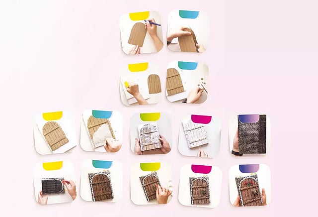 கார்டுபோர்டு அட்டையில் கதவு படம் வரைந்து, படத்தில் உள்ளவாறு அதை துண்டுகளாக வெட்டி எடுத்துக்கொள்ளுங்கள்.