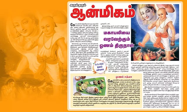 கேரளாவை ஆட்சி செய்த மகாபலி மன்னன், அந்த மக்களின் மீது அளவு கடந்த அன்பு வைத்திருந்தான். அசுர குலத்தில் பிறந்திருந்தாலும், பிரகலாதனின் வழிவந்த மகாபலி சக்கரவர்த்திக்கு, மகாவிஷ்ணுவின் மீது பக்தியும் உண்டு. அதே நேரம் அசுர குலத்திற்கே உரிய, தேவர்களை அழிக்க வேண்டும் என்ற கோபமும் உண்டு. ஒரு முறை மிகப்பெரிய யாகம் ஒன்றை நடத்த மகாபலி முன்வந்தான். அந்த யாகத்தில் கலந்துகொள்பவர்களுக்கு, கேட்கும் தானங்களை வழங்கவும் அவன் முடிவு செய்தான். இந்த யாகம் நிறைவு பெற்றால் இந்திரனின் பதவிக்கு ஆபத்து வரும் என்பதால், அதனை தடுத்து நிறுத்த தேவர்கள் மகாவிஷ்ணுவிடம் முறையிட்டனர்.