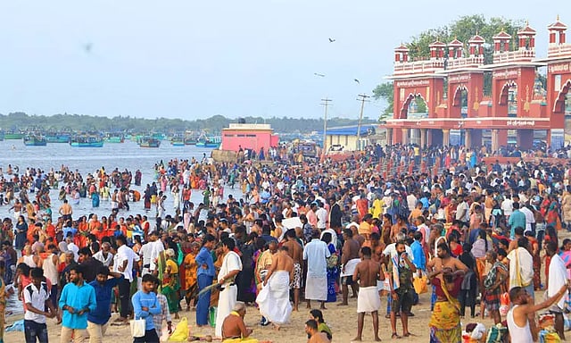 ராமநாதபுரம் மாவட்டம் ராமேஸ்வரத்தில் உள்ள ராமநாத சுவாமி கோவில் பிரசித்தி பெற்ற சிவாலயங்களில் ஒன்றாக திகழ்கிறது. இங்குள்ள அக்னி தீர்த்த கடலில் புனித நீராடி தர்ப்பணம் கொடுத்தால் முன்னோர்களின் ஆசி கிடைக்கும் என்பது நம்பிக்கை. இதற்காக நாடு முழுவதும் இருந்து நாள்தோறும் ஆயிரக்கணக்கான பக்தர்கள் ராமேசுவரம் வருகை தருகிறார்கள். அமாவாசை நாட்களில் தர்ப்பணம் செய்வது சிறப்பாக கருதப்படுவதால், அன்றைய தினம் பக்தர்களின் வருகை அதிகமாக இருக்கும்.