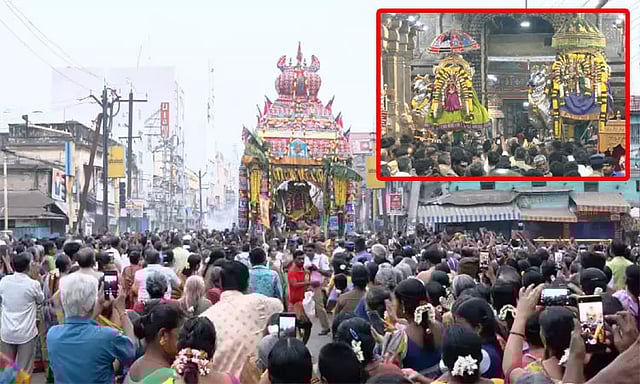 இந்த தேர்கள், கீழமாசி வீதியில் இருந்து புறப்பட்டு யானைக்கல், கீழவெளி வீதி, தெற்குவெளிவீதி, கிரைம்பிராஞ்ச், திருப்பரங்குன்றம் சாலை, மேலவெளிவீதி, குட்ஷெட் தெரு, வக்கீல் புதுத்தெரு வழியாக இருப்பிடத்தை சென்றடைந்தது. மீனாட்சி அம்மன் தேரை பெண்கள் மட்டும் இழுத்தனர்.