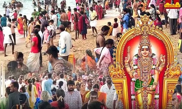 இந்த நிலையில் இன்று ஞாயிற்றுக்கிழமை என்பதால் ஏராளமான பக்தர்கள் வருகை தந்துள்ளனர். இதனால், கோவில் வளாகம், கடற்கரைப் பகுதி, நாழி கிணறு, முக்கிய சாலைகள் முழுவதும் பக்தர்களால் நிறைந்து காணப்படுகிறது. பக்தர்களின் கூட்டம் அதிகரித்து காணப்படும் நிலையில், கோவில் நிர்வாகம் சார்பில் சிறப்பு ஏற்பாடுகள் செய்யப்பட்டுள்ளன. மேலும், போலீசார் பாதுகாப்பு பணியில் ஈடுபட்டு வருகின்றனர்.