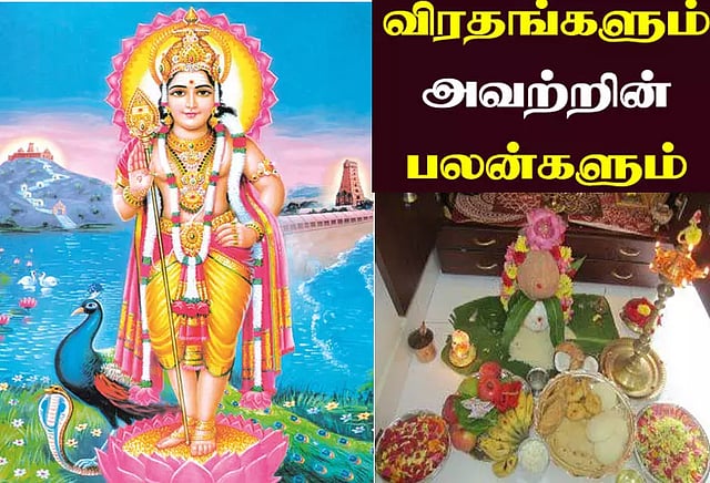 சஷ்டி விரதம்:- மனதில் எண்ணிய காரியங்கள் அனைத்தும் இனிதே நிறைவேறும். புண்ணியம் தரும்.