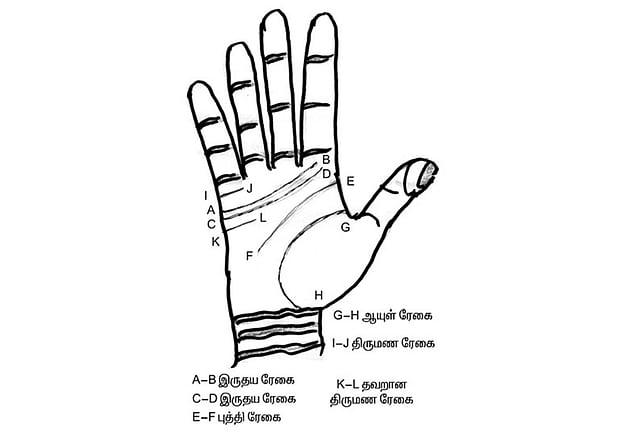 இனி கைரேகைப்படி துறவு வாழ்க்கை யாருக்கு அமையும் என்பதைப் பார்க்கலாம். ஒருவரது குடும்ப வாழ்க்கையை கெடுத்து துறவு மேற்கொள்ளச் செய்ய, சில ரேகைகள் முற்படுகின்றன. உதாரணமாக திருமண ரேகை, இருதய ரேகைக்கு மேல் பக்கம் குறுக்காக அமைந்திருக்கும். ஆனால் இந்தத் திருமண ரேகை, இருதய ரேகைக்கு அடியில் குறுக்காக சென்றிருந்தால், அந்த நபருக்கு திருமணம் செய்யும் யோகம் இல்லை. அதுபோல் அந்த நபரின் கையில் இரண்டு இருதய ரேகை அமைந்திருந்தால், அவருக்கு மிகவும் தாமதமாக திருமணம் நடைபெறும் அறிகுறியைச் சொல்வதாகும். அந்த நபர் ஒருவித விரக்தியுடன் வாழ்ந்து கொண்டிருப்பார். அவர் மனதில் இருப்பதை கண்டுபிடிக்க இயலாது. அவர் எப்போதும் தனிமையையே விரும்புவார். இவர்களே பின்னாளில் துறவறம் மேற்கொள்ளவும் வாய்ப்புண்டு.