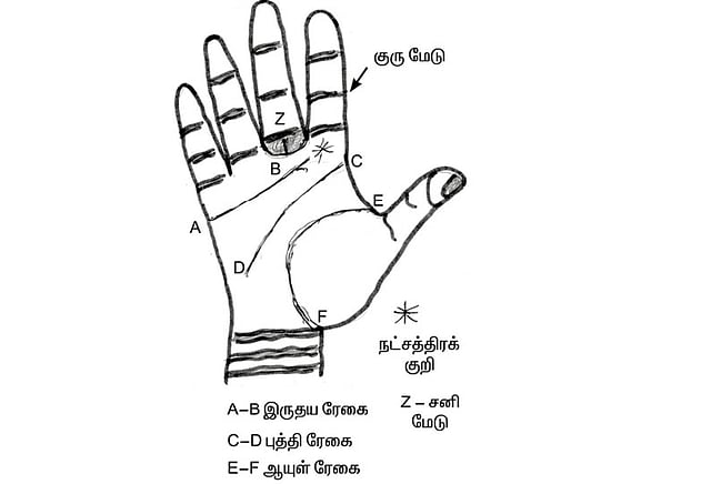 இனி கைரேகைப்படி நன் மக்கட்பேறு யாருக்கு என்பதை பார்க்கலாம். சனி மேட்டில் நேராக ஒரு செங்குத்து ரேகை இருப்பின், அந்த நபருக்கு நிச்சயமாக ஆண் வாரிசு உண்டு என்பதை தெரிவிக்கும் அறிகுறியாகும். அந்த செங்குத்து ரேகை, எந்தவித குறுக்கீட்டு ரேகையும் இன்றி நல்ல விதமாக அமைந்திருப்பின், அவர் தன்னுடைய மகனால் பாக்கியம் பெறுவார். சாதாரண மனிதனாக பிறந்த அவர் தன்னுடைய மகனால் பெரும் புகழ் அடைவார். அந்த மகன் பெரும் உத்தியோகத்தில் இருக்கும் யோகம் வாய்க்கும். குரு மேடு பலமாக இருந்தால் நல்ல புத்திரர்கள் அமைவார்கள். குரு மேட்டில் நட்சத்திரக் குறி இருப்பது மேலும் சிறப்பு சேர்ப்பதாகும்.