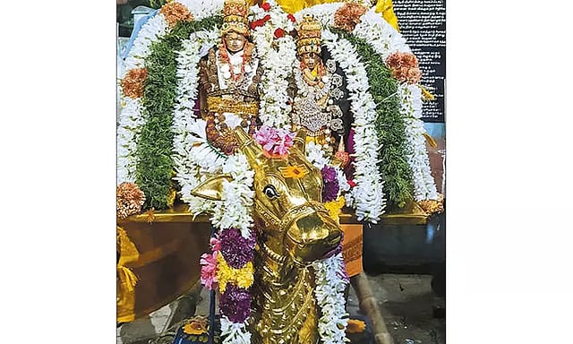 காஞ்சீபுரம் காமராஜர் வீதியில் அமைந்துள்ள பழமை வாய்ந்த சித்தீஸ்வரர் கோவிலில் பிரதோஷ விழா சிறப்பாக நடந்தது. இதில் மூலவர் சித்தீஸ்வரர் மற்றும் நந்தி பகவானுக்கு சிறப்பு அபிஷேகம், தீபாராதனைகள் நடைபெற்றது இதை தொடர்ந்து புதியதாக செய்யப்பட்ட தங்க முலாம் பூசப்பட்ட நந்தி வாகனத்தில் பிரதோஷ பகவான் எழுந்தருளி கோவில் வளாகத்தில் 3 முறை வலம் வந்து பக்தர்களுக்கு அருள் பாலித்தார். ஆலய பரம்பரை தர்மகர்த்தா பாலசுப்பிரமணிய குருக்கள் பக்தர்கள் ஒத்துழைப்புடன் இந்த புதிய நந்தி வாகனம் தயார் செய்யப்பட்டது.