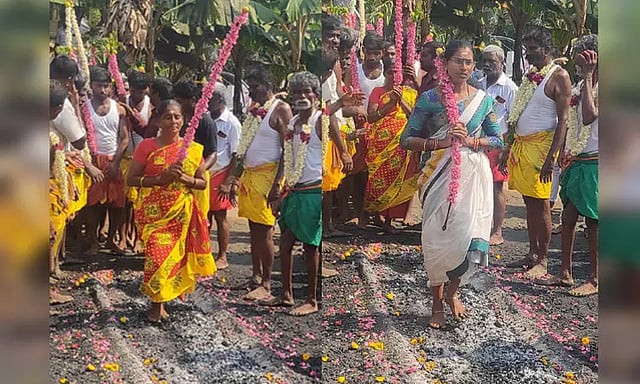 25-ம் தேதி (நேற்று) காலை தீர்த்தம் எடுத்து வருதல், வாண வேடிக்கை, அரண்மனை பொங்கல் நிகழ்ச்சிகள் நடைபெற்றன. இதைத் தொடர்ந்து, இரவு அக்னி குண்டம் துவங்கப்பட்டது.